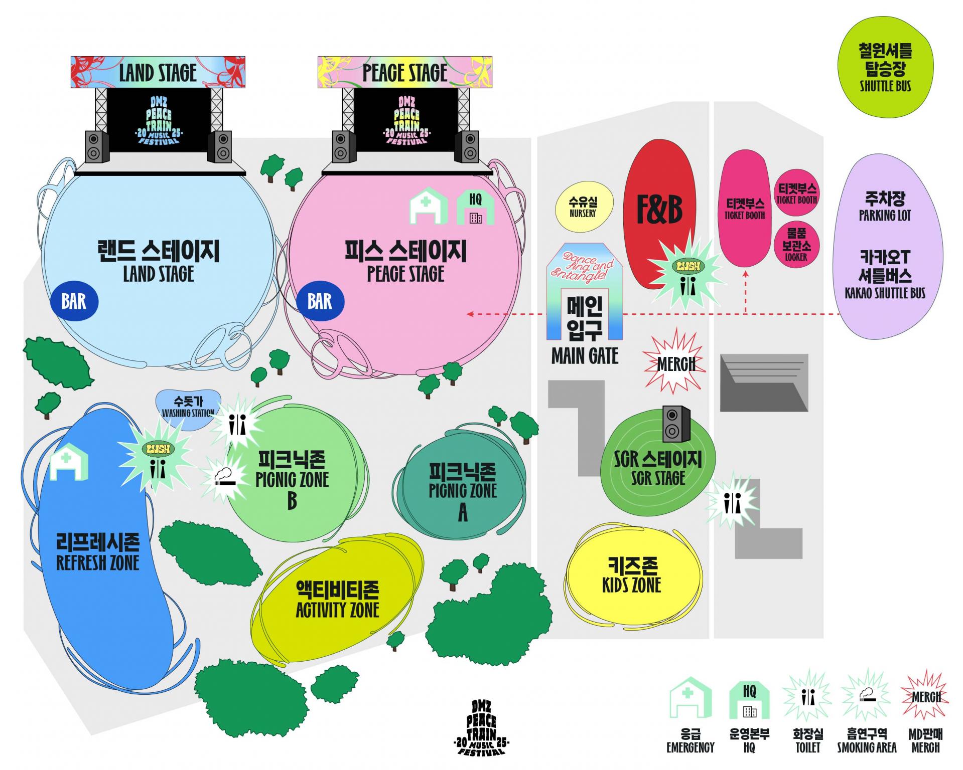 A. 본 페스티벌은 야외 비지정 자유석으로 운영됩니다. 메인 스테이지(피스스테이지, 랜드스테이지) 구역은 스탠딩 존으로 운영됩니다.