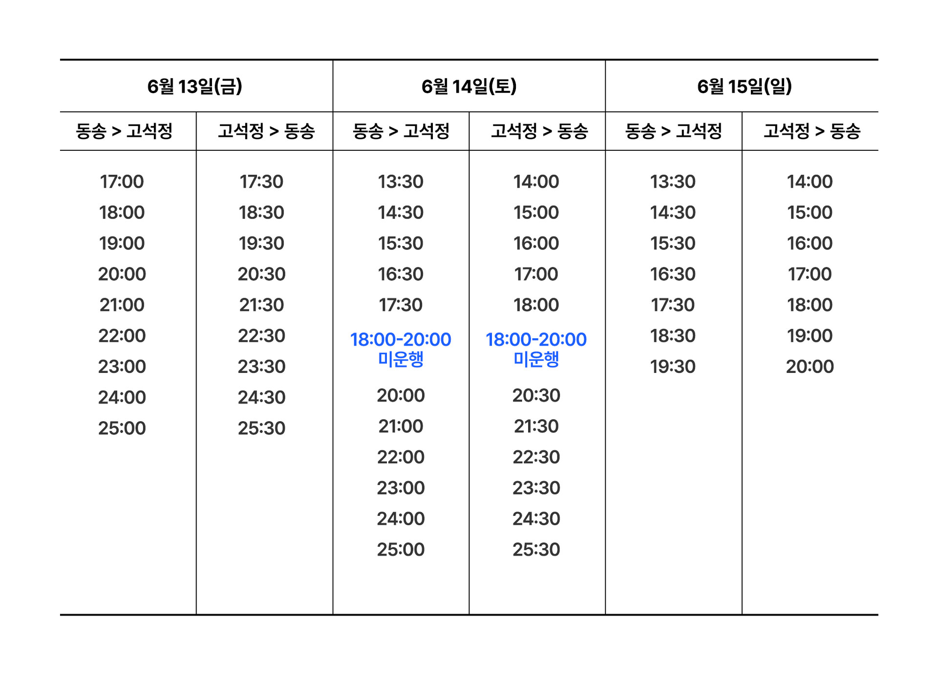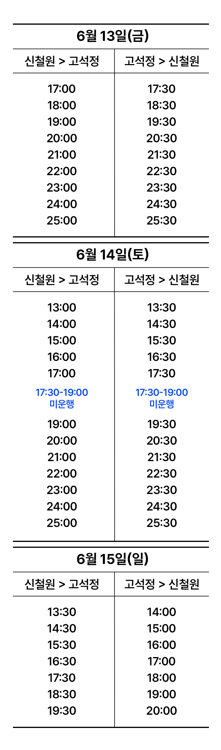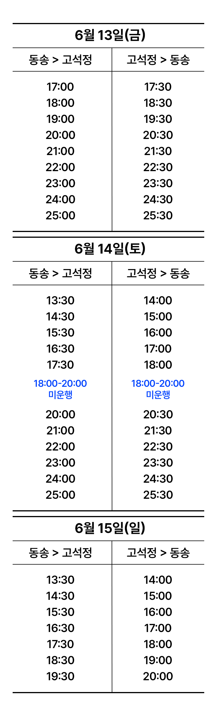 일반 대중교통 버스에서 제공되는 출⋅도착 시간 안내 및 운영과는 차이가 있을 수 있습니다.