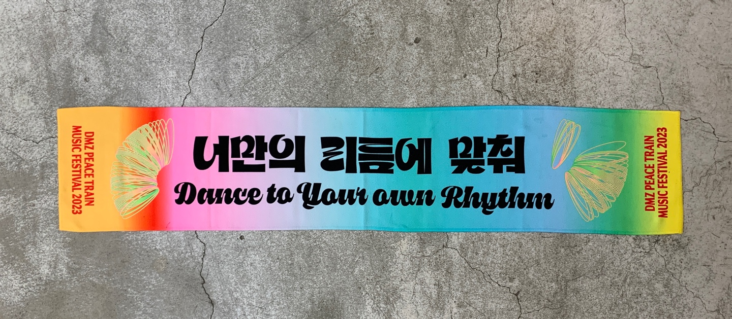 2023 피스트레인의 메인 그래픽과 카피 “너만의 리듬에 맞춰”가 디자인된 슬로건은